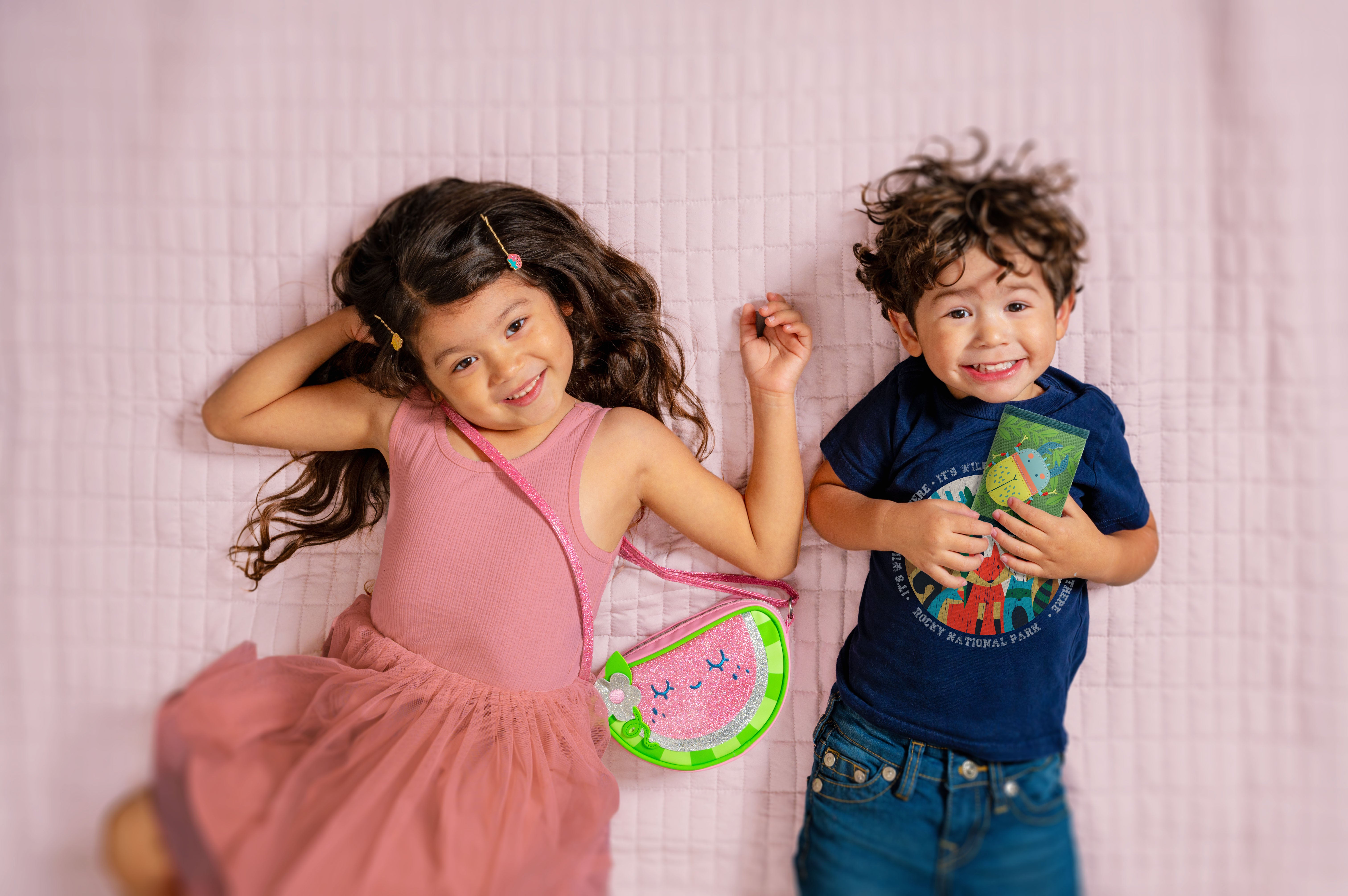 Your little fashionista will love these adorable character purse. Designed with eye-catching metallic finish fabric and amazing 3D accents that bring these little characters to life. Each purse comes with an adjustable shoulder strap to ensure a comfortable, flexible fit. These purses are also designed to coordinate with the rest of the Stephen Joseph line, or pair with your favorite outfit for a trend forward look!
