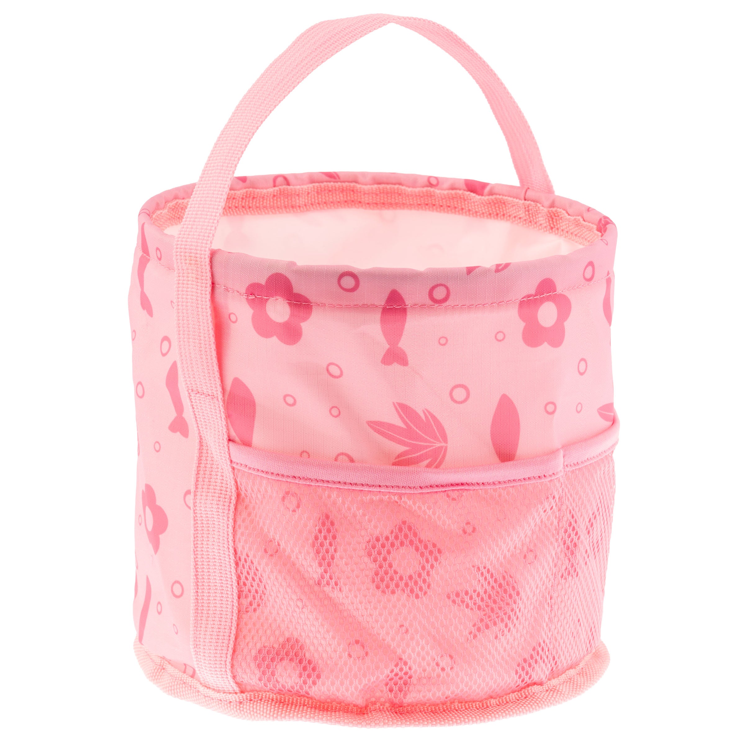 Super fun and collapsible beach bucket that's perfect for travel! This lightweight bucket collapses flat for easy packing in your beach bag or suitcase. Comes with 4 sand toys to elevate the beach experience and keep kids entertained. Features a convenient mesh pocket for storing small items and a mesh bottom that lets sand drain away instantly—no more soggy toys or water pooling at the bottom. Wipe clean with a damp cloth and let dry completely before storing.