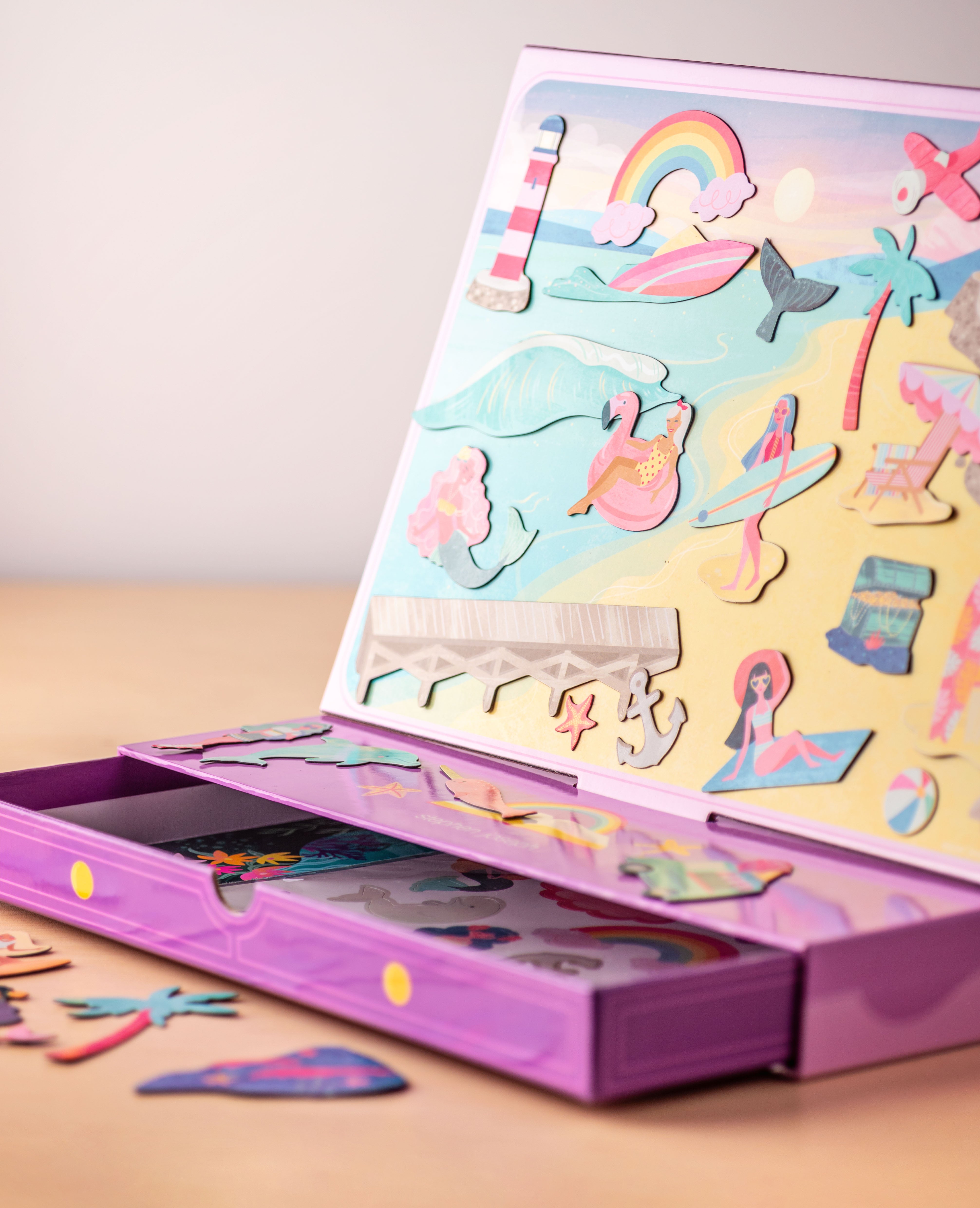 - 2 illustrated scenes and 50 fun magnetic pieces